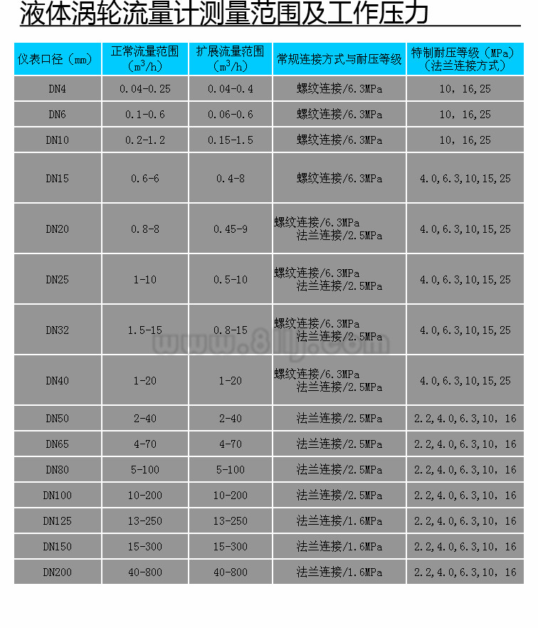 ?范圍度寬,中大口徑可達1:20,小口徑為1:10;渦輪流量計渦輪流量計結構緊湊輕巧,安裝維護方便,流通能力大;適用高壓測量,儀表表體上不必開孔,易制成高壓型儀表;